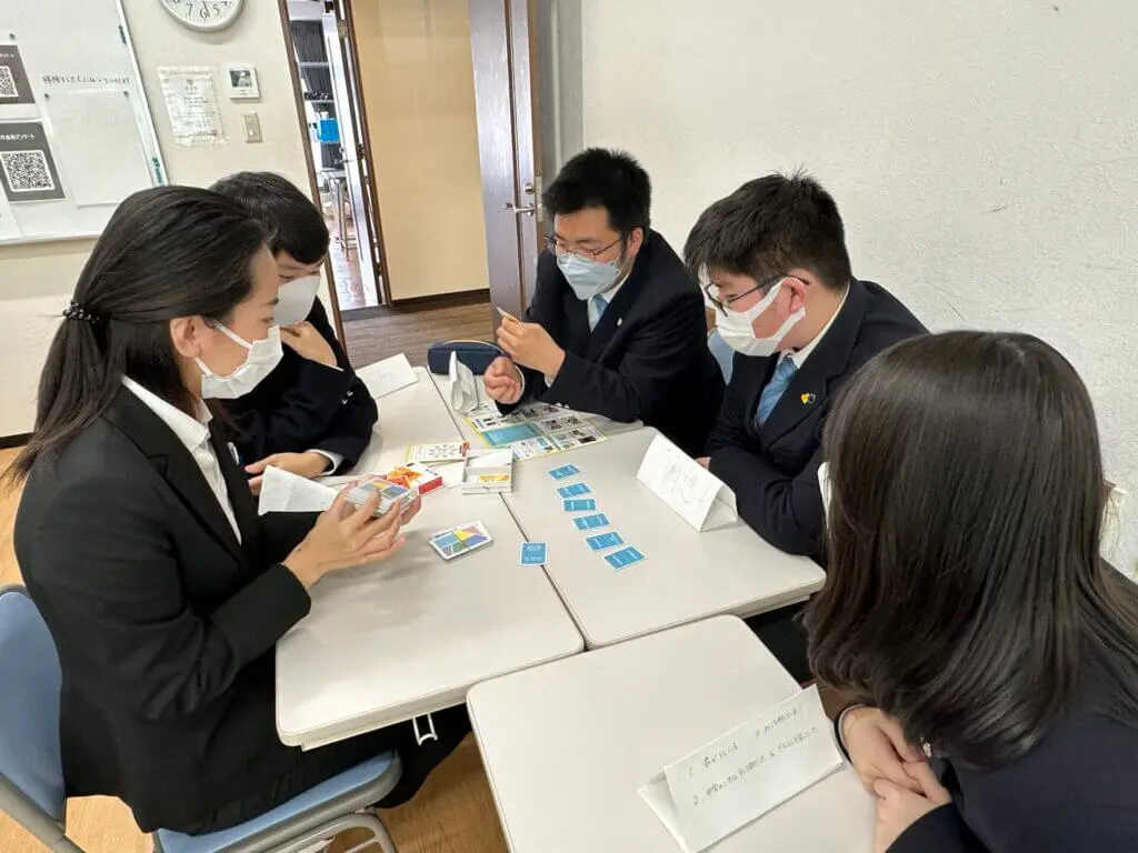 小泉クラスのレクリエーション会では、自己紹介として、4つの内1つだけ嘘を入れて嘘を見破る「嘘つき自己紹介」を行った後、トランプやUNO、コヨーテなどカードゲームをグループで実施しました。初めは、少し緊張している様子もありましたが、最後には話したことがなかった生徒同士でも笑顔で話している様子が見受けられました!