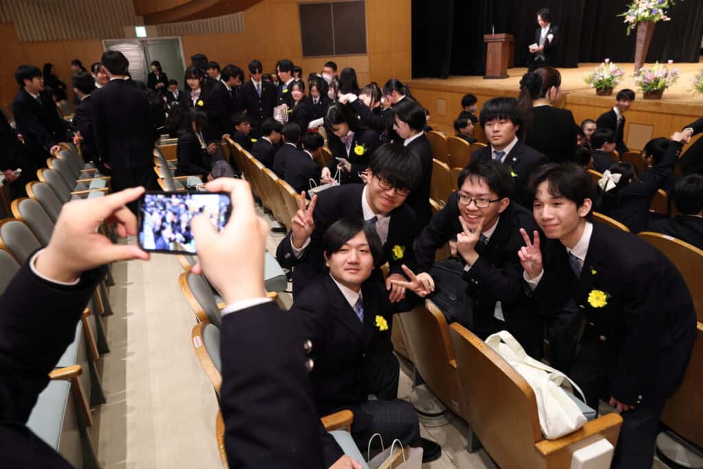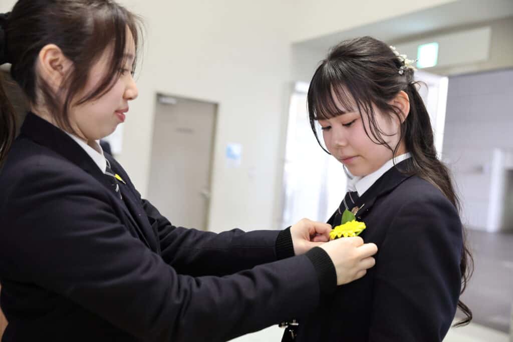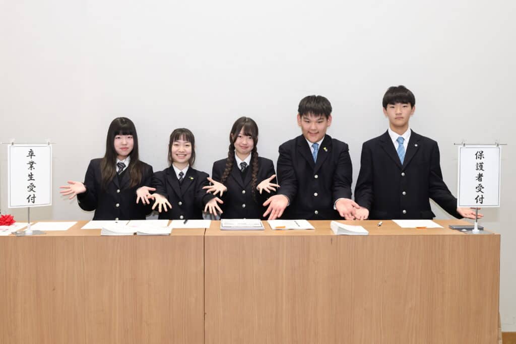 卒業生のために、一生懸命卒業式の準備や当日の運営を行っていたのは実行委員の在校生です。卒業式を成功させるために、約1か月前から準備や練習をスタートさせました。そして当日は、会場設営だけでなく、受付・会場案内・音響・撮影、司会など色々な場面で在校生が活躍してくれていました。お世話になった3年生に恩返しがしたい一心で、自分の役割に責任を持って取り組むことができていました!