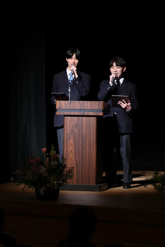 送辞では、それぞれの目標に向かって努力した卒業生の先輩たちへのはなむけの言葉、答辞では、転校を経て歩んできた道のり、在校生への応援や支えてもらった方々への感謝を伝える言葉が述べられました。胸を張り、堂々とした表情で壇上に立った二人の答辞と送辞、どちらも素晴らしかったです。