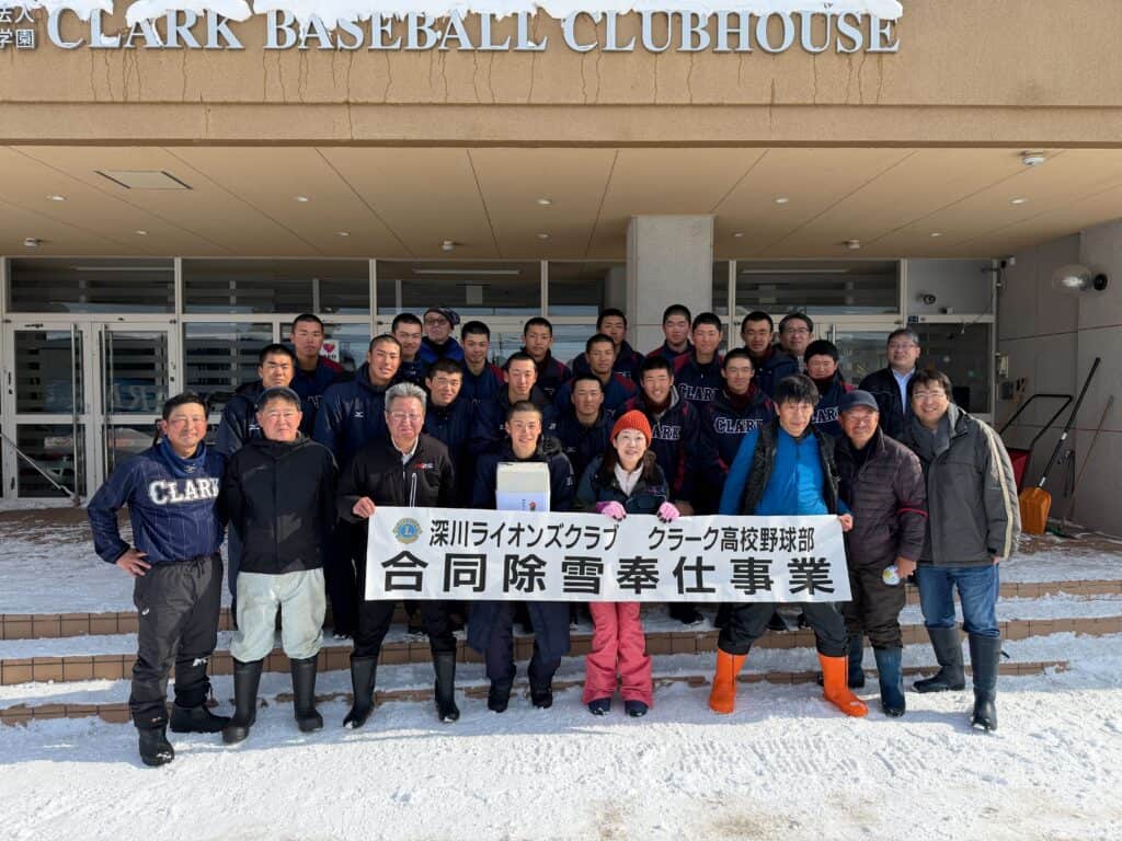 2月14日(土)、硬式野球部は深川ライオンズクラブの皆様とともに、地域の除雪ボランティア活動を行いました。