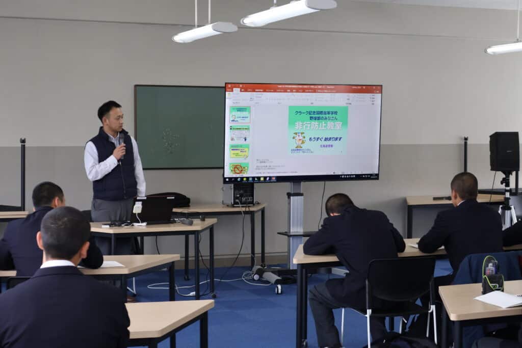 スポーツコースの生徒にとっては、競技力向上だけでなく、一人の社会人としての自覚と責任を持つことが求められます。今回の講話を通して、自分自身を守る力、そして仲間を守る判断力の重要性を改めて考える機会となりました。