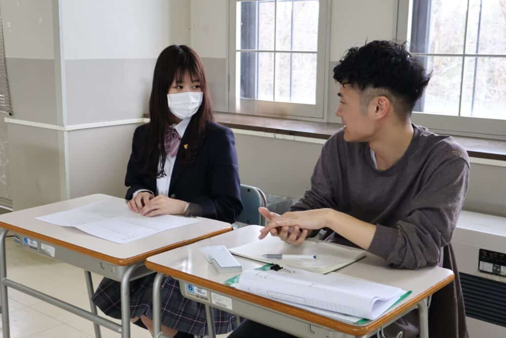 授業は講義形式ではなく、対話を中心とした個別面談形式で実施。研究員の方が生徒の興味・関心、得意分野、これまでの経験を丁寧に引き出しながら、「なぜその進路を考えているのか」「将来どのように社会と関わりたいのか」といった本質的な問いを投げかけてくださいました。