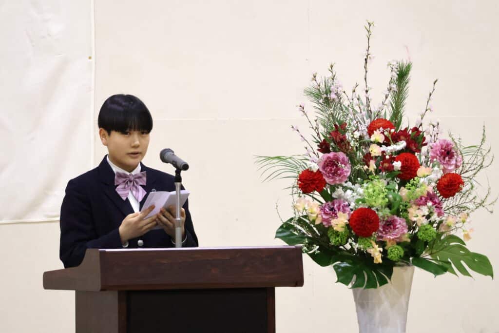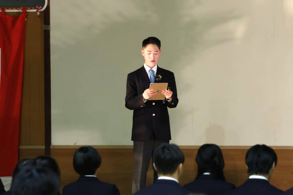 式では、在校生による心のこもった送辞、そして卒業生による答辞が述べられました。これまでの学校生活での思い出や仲間との時間、支えてくれた家族や先生方への感謝の気持ちが語られ、会場は温かな雰囲気に包まれました。