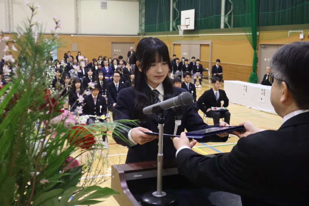 式では、在校生による心のこもった送辞、そして卒業生による答辞が述べられました。これまでの学校生活での思い出や仲間との時間、支えてくれた家族や先生方への感謝の気持ちが語られ、会場は温かな雰囲気に包まれました。