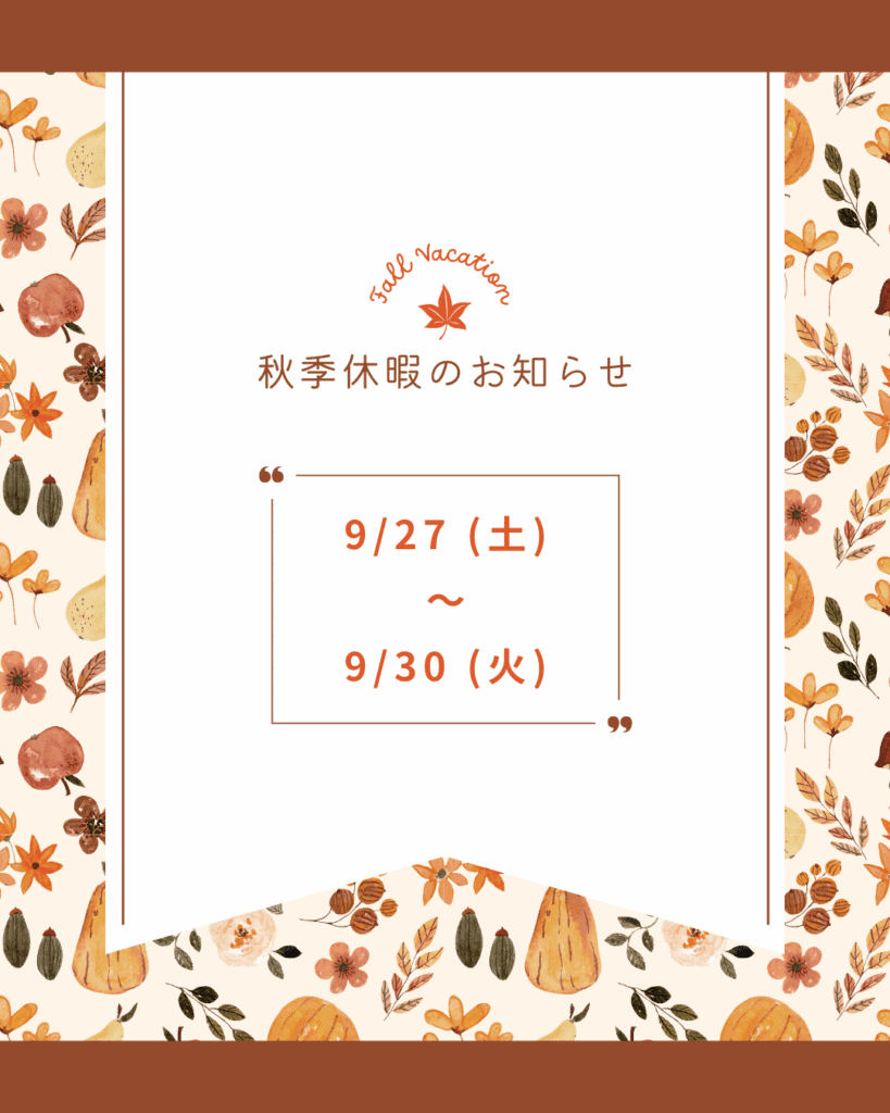 【ご連絡】秋季休暇のご案内