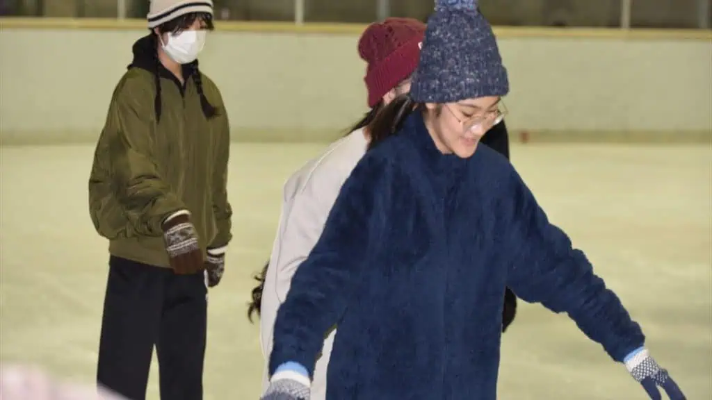 スケート初心者の生徒も、友人のサポートを受けながら練習を続け、最後にはリンクの中央で滑走できるまでになりました。