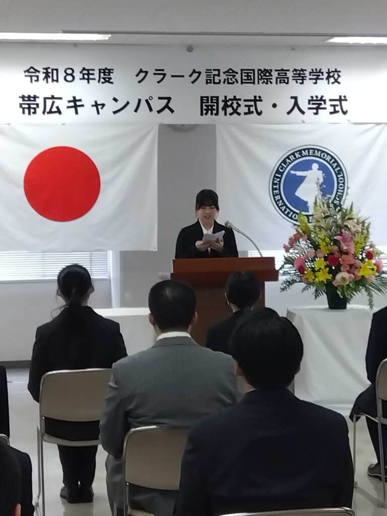 クラーク記念国際高等学校帯広キャンパスは4月10日、帯広市内のとかちプラザで開校式と入学式を挙行しました。