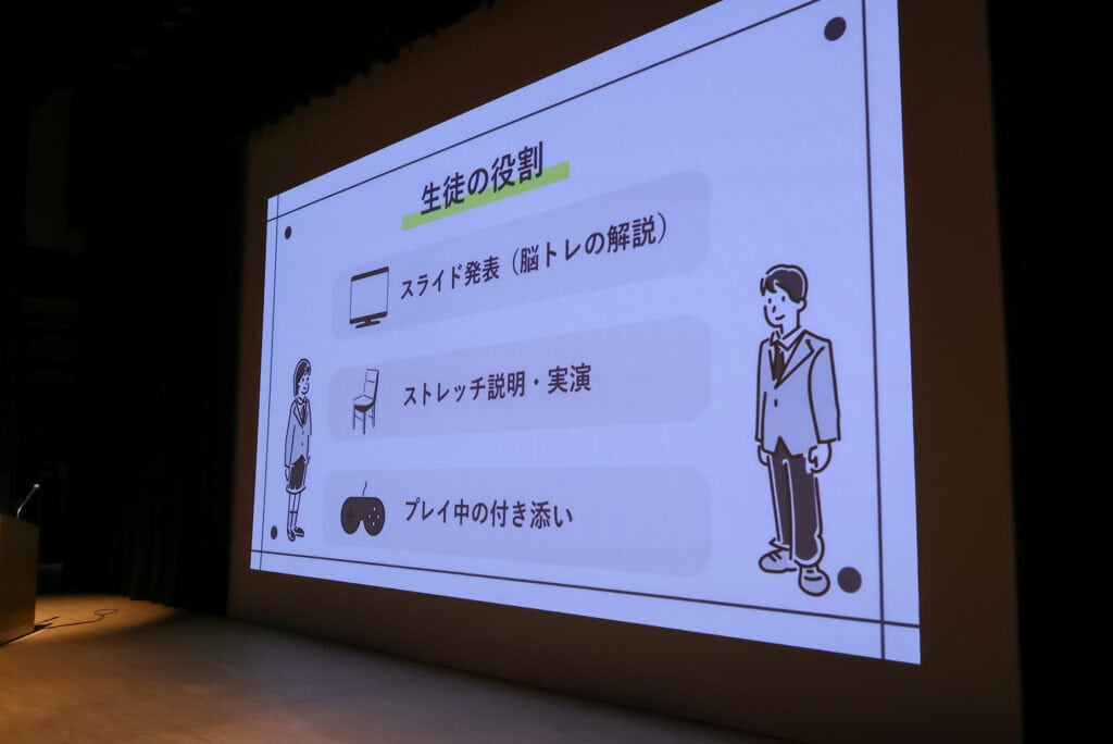 今回その実践と振り返りから見えたもの、今後の可能性をまとめて、ゲームの社会的にポジティブ役割を考察し、プレゼンに資料をまとめ全校生徒の前で発表しました。そのメッセージは、「eスポーツに対するネガティブな偏見を払拭できるし、世代間交流にもつながる。この脳トレゲーム講座を同じ世代の人たちにも実践してほしいし、それを広めていきたい。札幌大通校発信のこの講座を全国のクラークの他の校舎でも実践してほしい。」そんな可能性を発表しました。
