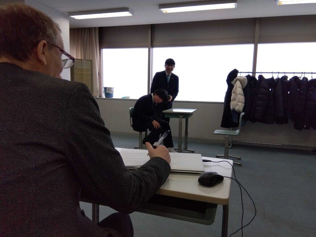 国際コースの「Drama」授業。本日は学年末試験が実施されていました。
