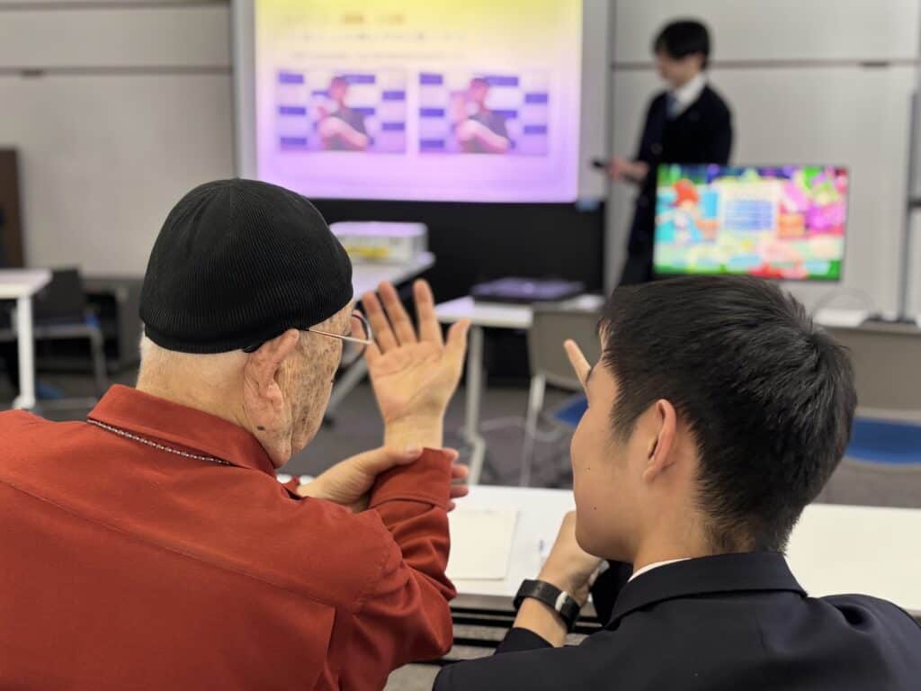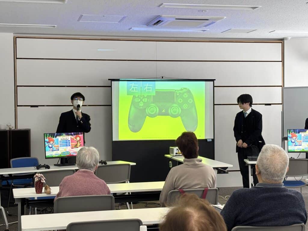 当日は、会場設営、司会進行、ウォーミングアップ、ゲーム実践、参加者の皆さまへの声かけやサポートまでを、すべてeスポーツコースの生徒が担当しました。前回の経験を踏まえて準備を行ったことで、初めての会場でも落ち着いて運営することができ、高齢者の皆さまへの声かけもよりスムーズになりました。また、ゲームに対して苦手意識を持っている方にも無理なく参加していただけるよう、声のかけ方や進め方を工夫した結果、安心して前向きに取り組んでいただく様子が多く見られました。