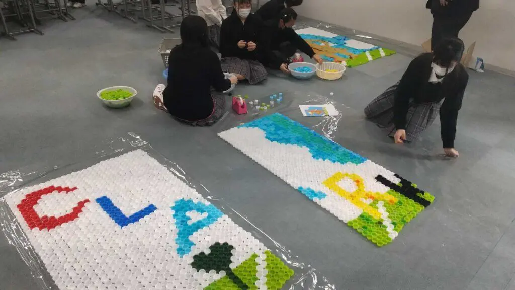【総合進学コース】 総合探究授業、エコボラ探究チーム ~キャップアート完成間近~