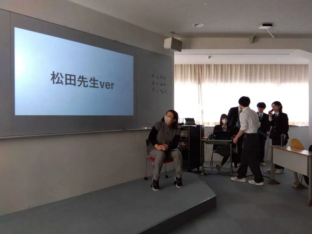 今日は2名の担任と一緒にレクリエーションが行われていました。松田先生、山本先生の二人は1年次から担任をしてきた先生。お世話になった先生と一緒にこれまでの足跡をたどるため、生徒たちが考えたレクは担任クイズ。生徒たちは大盛り上がりでした。