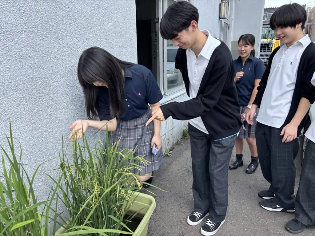 札幌大通校では、プランターを使い、泥に無機質な砂を混ぜることで、あえて栽培条件を限定してお米の栽培に取り組みました。宇宙空間は空気も水もないので、そこ自体はまったく条件を整えることはできませんが、場所に限りがある状態、土壌にも限りがある状態での栽培に取り組みました。生徒たちが種籾から育て土壌も設置しました。