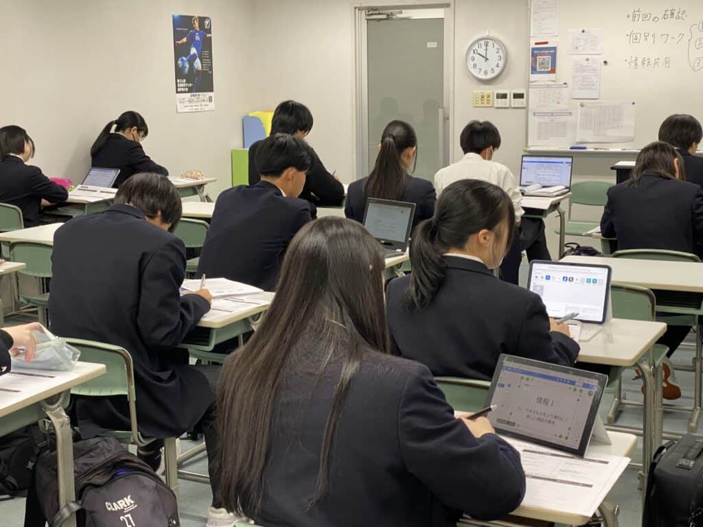 1年生「情報Ⅰ」授業では、著作権について権利を覚えるだけではなく自分達で個人ワークを行い商品開発をしながら授業を進めています。
