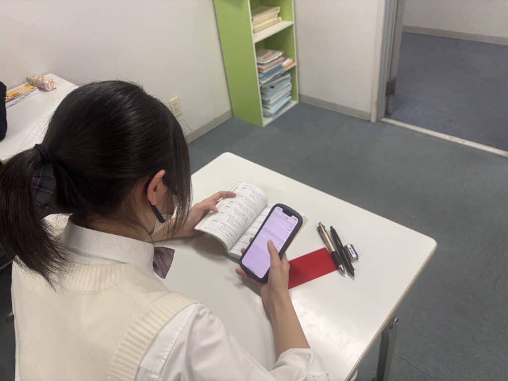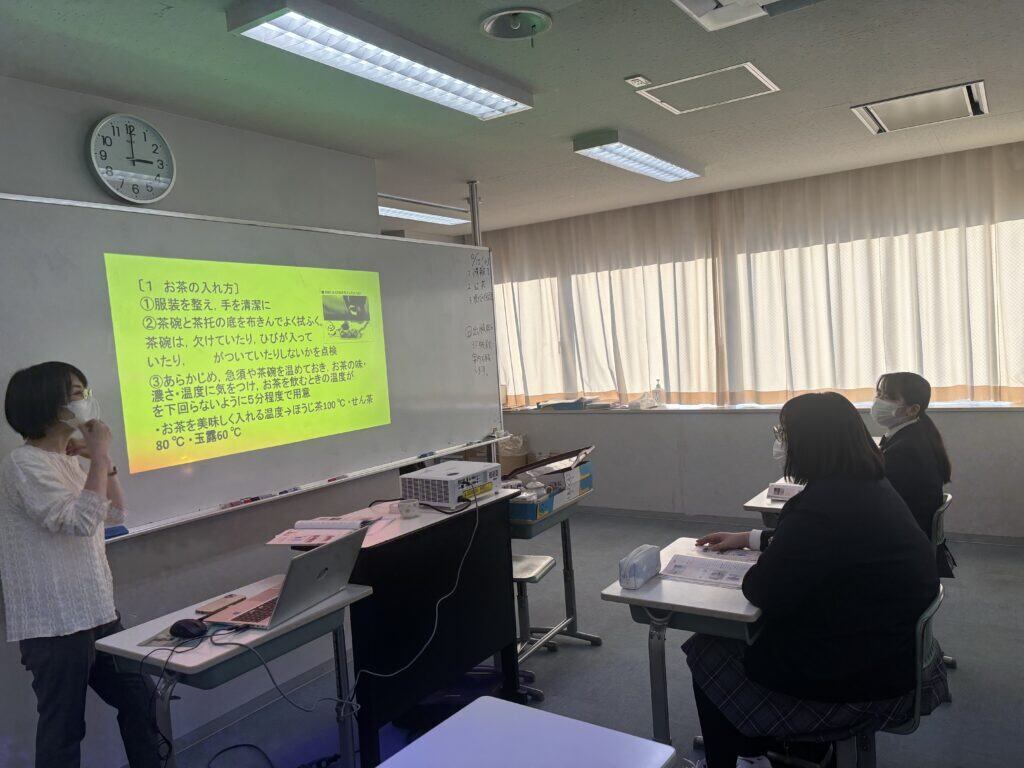 最後に総合進学コース。「ビジネスコミュニケーション」ではお茶の入れ方をレクチャーを受けていました。「総合英語」では英検対策の学習をモノグサというAIを使用した英単語アプリを活用して自立学習をしていました。