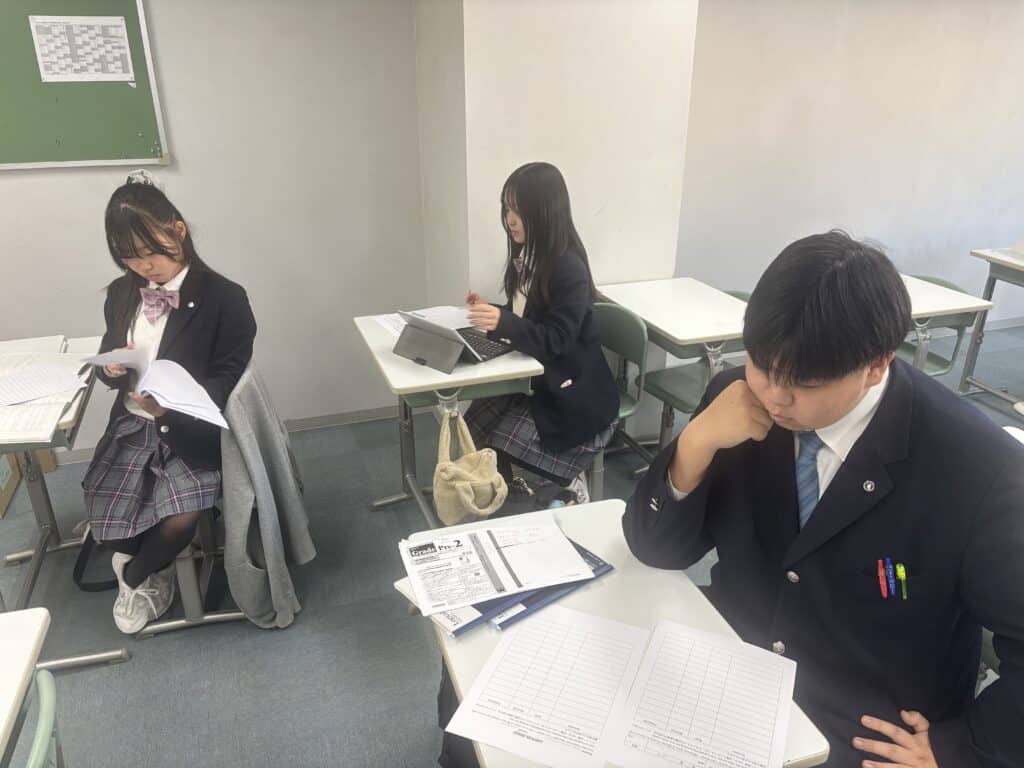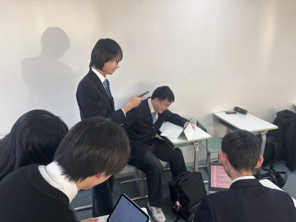 次は国際コース。「Dorama」授業では英語で演劇をするという内容です。役割決めを行っておりグループ内で盛り上がっていました。「Test Skills」授業では自分たちで単語テストを作成する内容でした。どのような内容にするのか悩む姿が見られました。