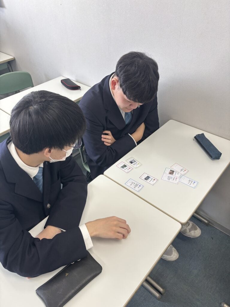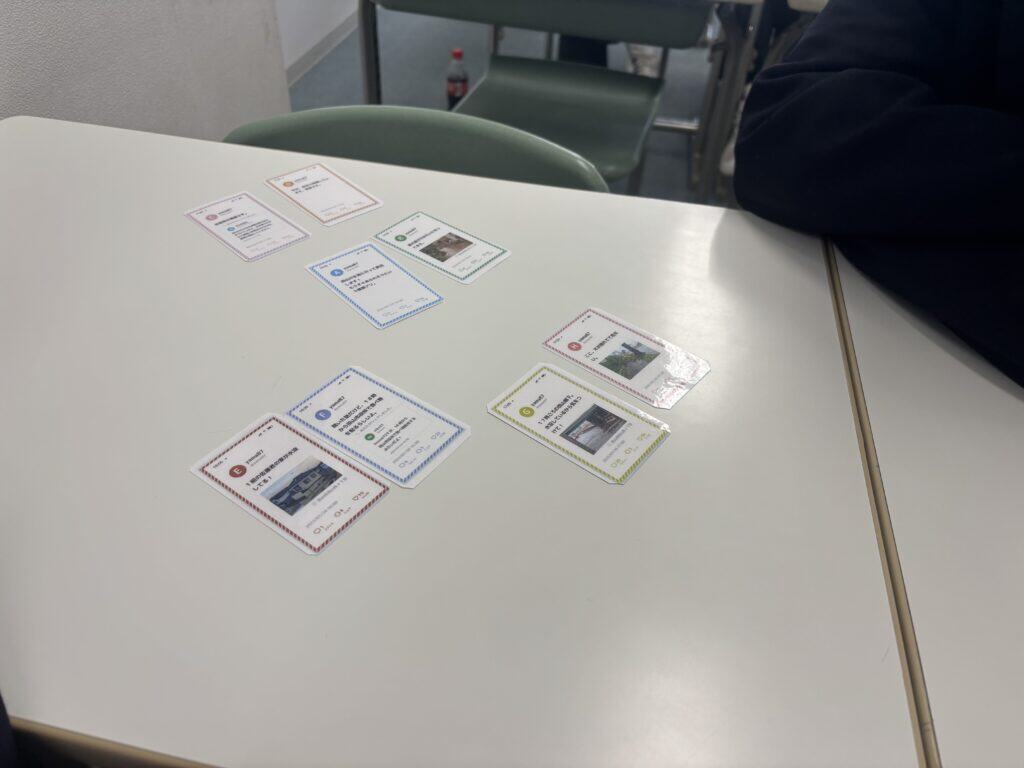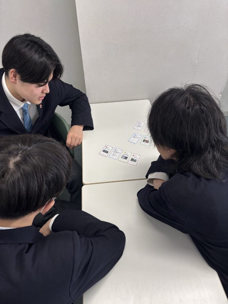 授業では、災害が発生したという想定のもと、カード教材を使いながら「この情報は発信してよいのか」「発信するとしたら、どのような点に気をつけるべきか」をグループで話し合いました。生徒たちは、被害状況や支援情報を伝えることの大切さを感じる一方で、安易な発信が混乱や不安を招く可能性があることにも気づいていました。