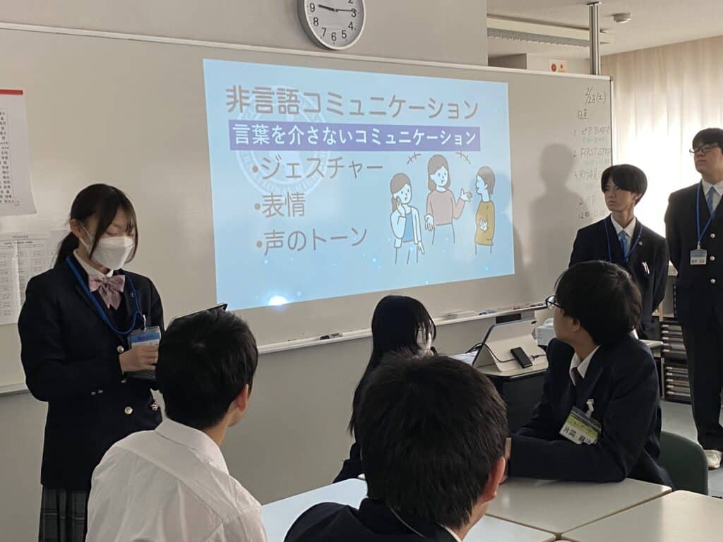 ピアアシスタント授業では、言語コミニュケーションと非言語コミニュケーションについて実践し学びました。実行委員企画では、先生クイズで先生の名前と顔、教科がわかりましたか?