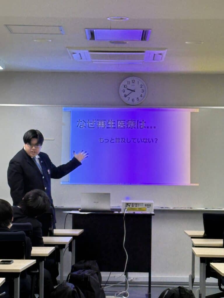 生徒は、人前で講義をするのはなかなか予定通りにいかず大変だったと語っていましたが、よい経験になったと思います。今回講義を実施した生徒は3/19から神戸で行われる「日本再生医療学会総会 高校生のためのセッション」にてポスター発表を行う予定です。