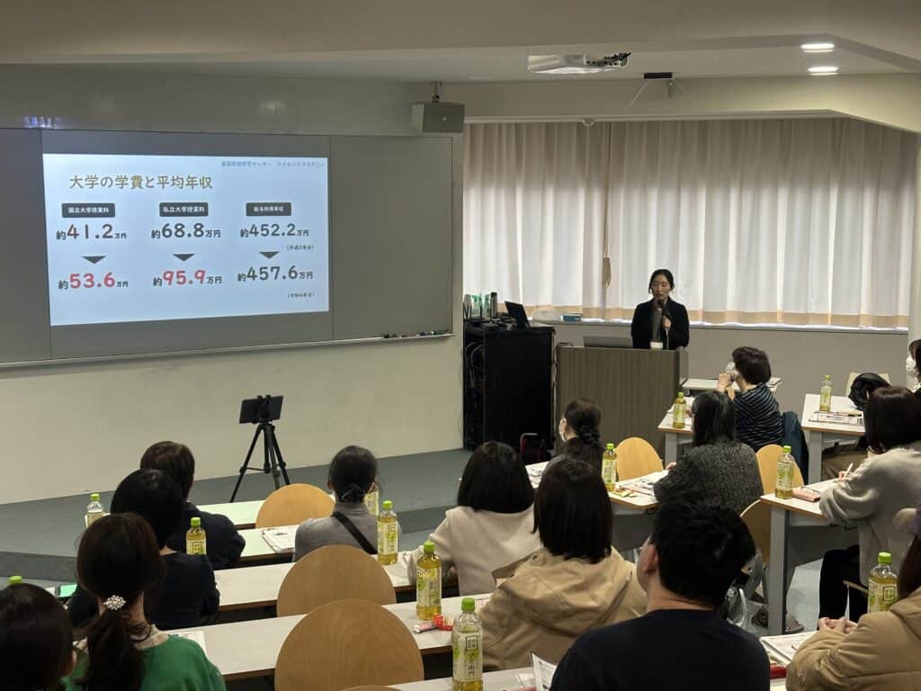 卒業式が終わり、年度の終わりを迎えたこの時期、二学年の第2回目の保護者会が開催されました。中野校長の挨拶から始まり、奨学金についてライセンスアカデミーの千葉様を招いての進路講話そして、本校における進路の動きの話を行いました。休憩をはさんで学習と生活面の報告、学年主任の話と続き、最後は修学旅行を中心とした1年間の学校生活をまとめたスライドショーを上映しました。