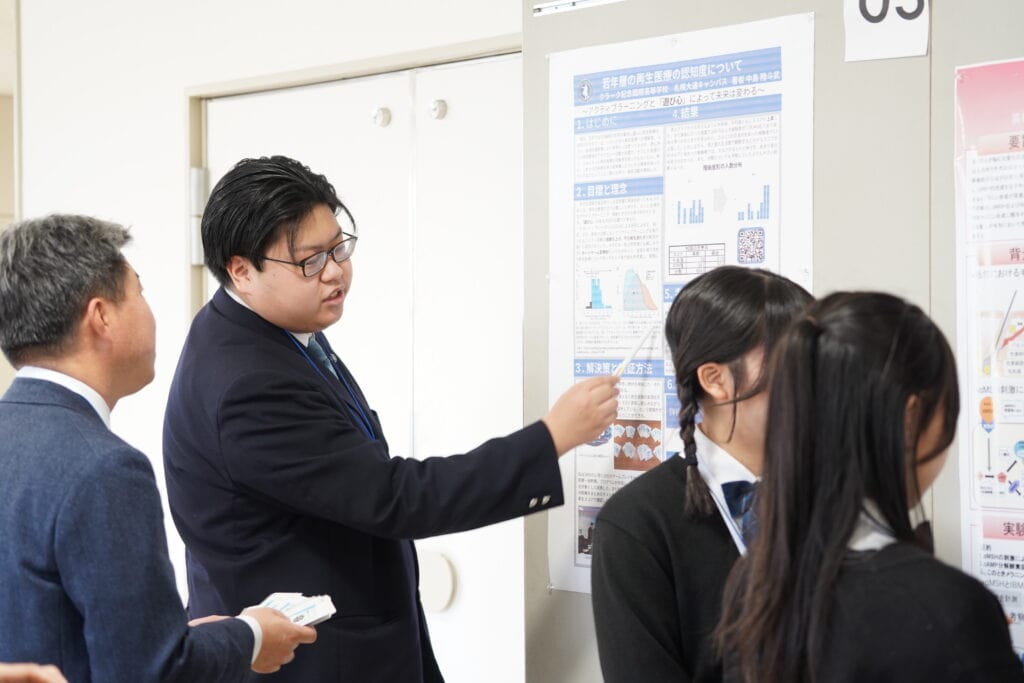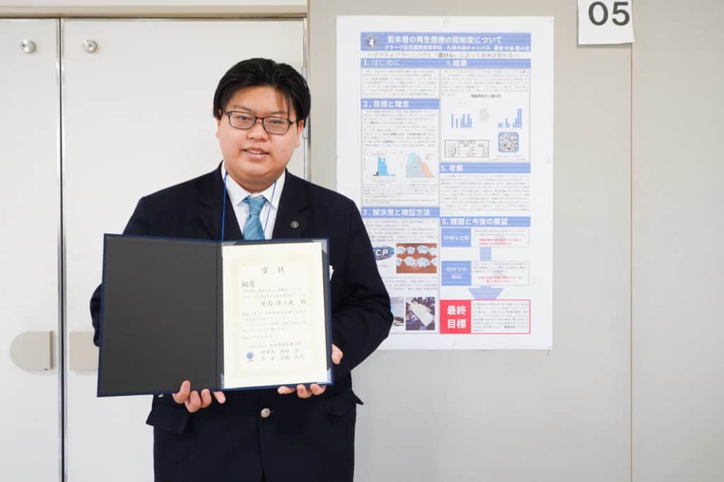 専修学校クラーク高等学院札幌大通校では、基礎学力を高める従来型の学習以外にも、学内で活動してきた成果を外部のコンテストや学会などで発表する探究的な学びを積極的に実施しています。