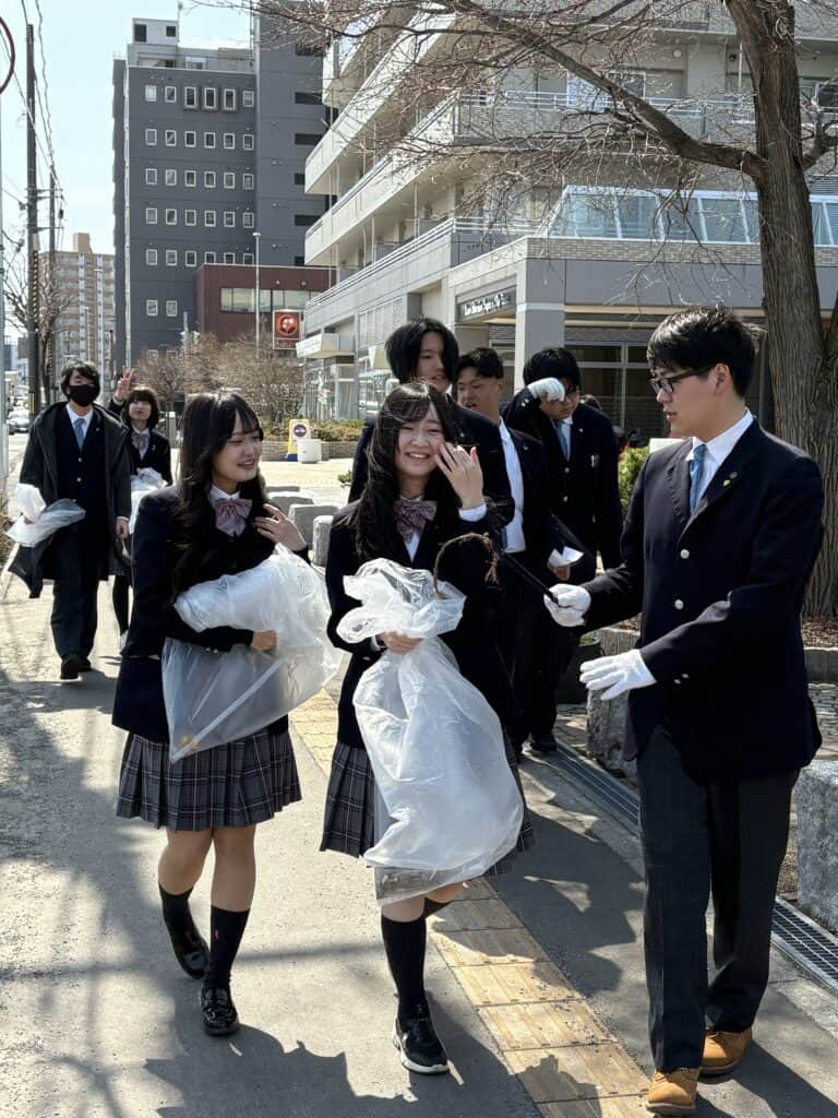 実際に、ごみを拾いながら仲間と声をかけ合い、笑顔で活動する様子が多く見られました。協力しながら一つのことに取り組む中で、少しずつ距離が縮まり、クラスとしての一体感も生まれていったように感じます。清掃活動というシンプルな取り組みではありますが、その中には多くの学びと気づきがありました。