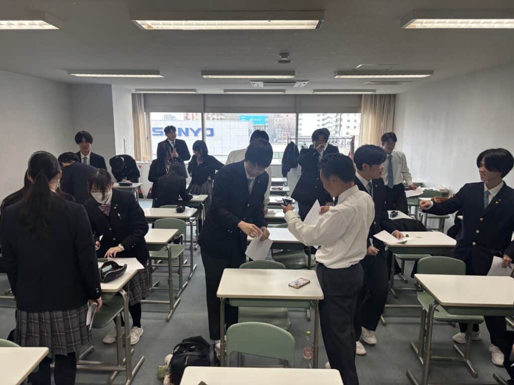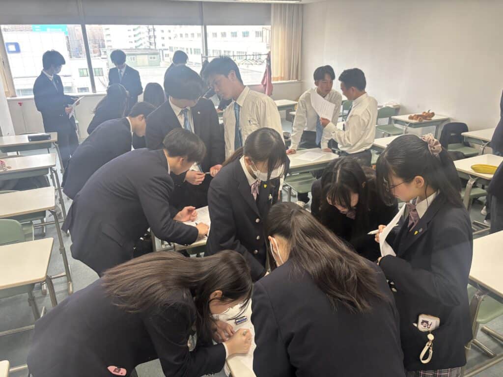 活動が始まると、教室内は一気に活気にあふれ、「〇〇な人いませんか?」「それ私です!」といった声があちこちで聞こえてきました。普段あまり話す機会がなかった生徒同士でも積極的に声をかけ合い、笑顔で交流している姿がとても印象的でした。また、「意外と同じ趣味だった」「そんな一面があるんだ」といった新たな発見も多く、生徒同士の距離がぐっと縮まったように感じられました。