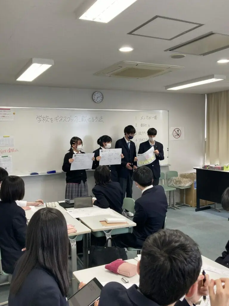 総合進学コースの1年生の社会探求の授業で、3週間にわたって『学校をギネスバックに載せる方法』を考えてきました。