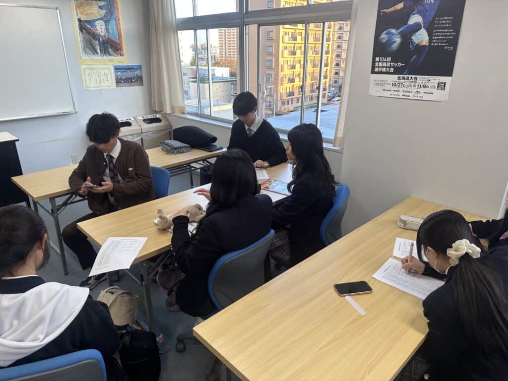 2学年の希望者で構成された「修学旅行実行委員」の本格的な会議が開催されました。実行委員は修学旅行のしおりを作成するグループ、修学旅行1日目の夜に行われるレクリエーションを企画と運営を行うグループ、滋賀と大阪の宿泊施設の部屋割りを決めていくグループに分かれて話し合いを行いました。しおり作成のグループは、実行委員のグループLINEに表紙のデザインを共有して意見交換を行うなど具体的な動きを始めていました。