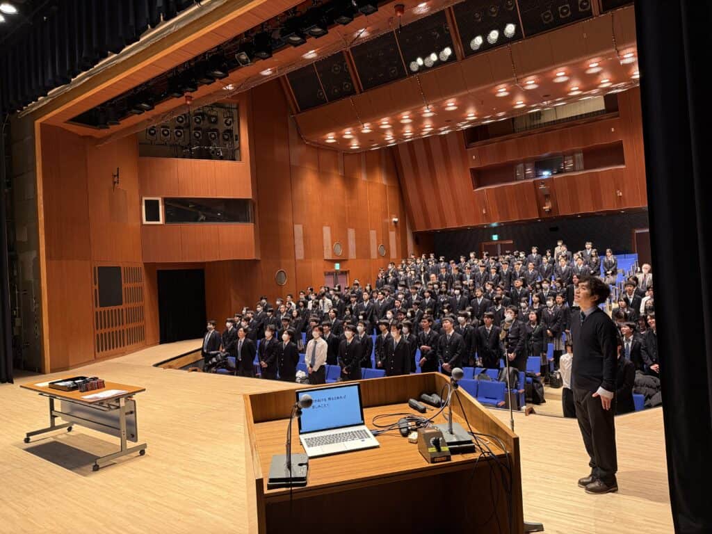 最後に、校長先生からのお話がありました。校内での施設の使い方や、SNSの利用におけるモラルについて触れ、「自分の行動がこのあとどうなってしまうのかを想像することの大切さ」について話がありました。何気ない言葉や行動が、知らないうちに誰かを助けることあれば、誰かの心を傷つけてしまうこともあります。自分自身の心を守るため、そして周りの人の心を守るためにも、想像力をもって行動することの重要性を改めて考える機会となりました。