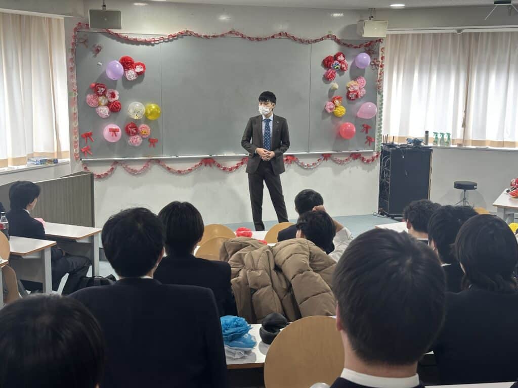 そして、3学年担任の最後の話がありました。クラークを卒業した後、大学を卒業して教員になった川西先生は、3年生の担任として、そしてクラークの先輩としてそれぞれの立場で思いを語りました。会が終わり教室に戻るとそこには1年生と2年生が。廊下に立って拍手で3年生への感謝を伝えました。