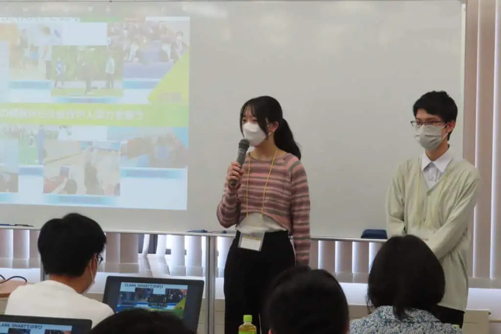 オープンスクールの最大の魅力は、『生徒の学校生活について生の声を聞ける』ことです。自分の時間割を見せながら授業の仕組みについて話してくれたり、なぜこの時間割にしたのかを説明したり、クラーク国際高校に入学を決めた理由や学校生活の様子を語ってくれます。それぞれの生徒が、参加した中学生に想いを伝えてくれました。