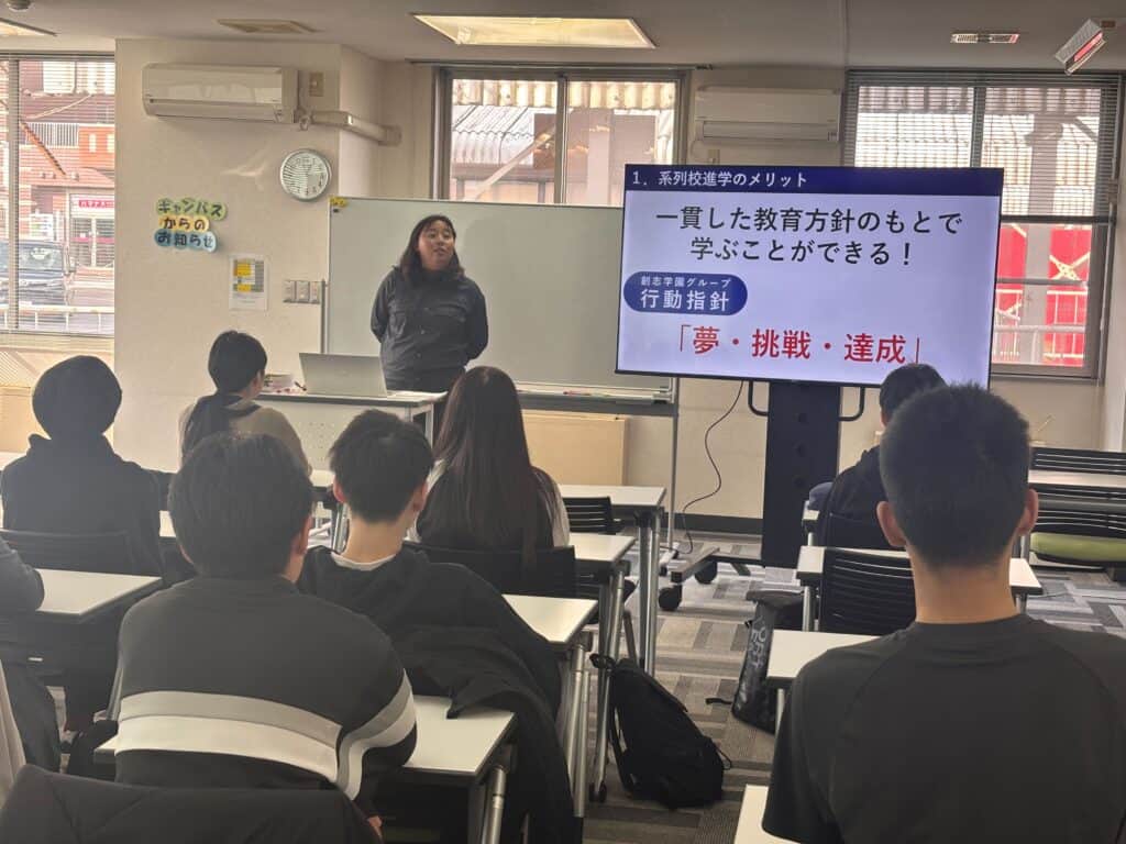 クラーク記念国際高等学校の運営母体である学校法人創志学園には、様々な系列校があります。系列校は国内の大学・短大や専門学校に加え、海外4年制大学もあります。毎年多くの生徒たちが進学先として選択しており、進路選択がより充実したものになっています。この日の授業では、4年生大学の「IPU環太平洋大学」と海外にある「国際大学 IPU New Zealand」を中心に進路担当の教員が系列校のガイダンスを実施しました。特に、岡山と東京にある環太平洋大学には多くの学部学科が設置されており、進路に関する情報を得ることで進路選択の幅も広がります。今後も進路実現に向けて生徒たちの頑張りが実を結ぶように、サポートをしていきます!