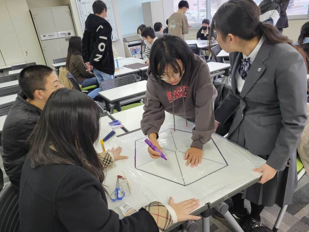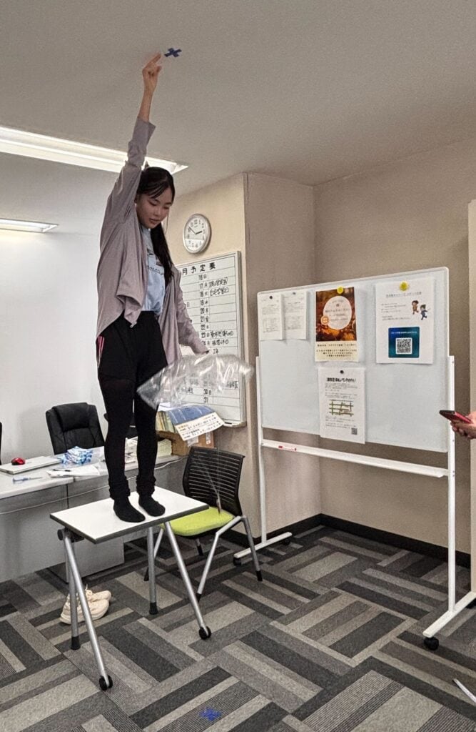 苫小牧キャンパスでは、乾電池Satパラシュートゲームを実施しました。教室内で完結できる、小型・簡易版の“Can-Satミッション”として、「着地制御」を競うパラシュートゲームを行いました。身近な素材(乾電池・ゴミ袋など)を使い、グループで話し合いながら製作し、空中滞空時間と着地精度を競いました。目的地に着地させることが難しく、試行錯誤しながら、楽しく学ぶことができました。