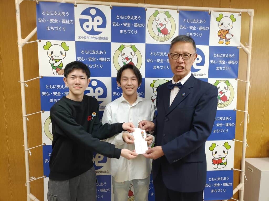 10月に札幌白石キャンパスと合同で実施した「文化祭」の売上の一部を「赤い羽根共同募金」に寄付するために苫小牧社会福祉協議会を訪問し、寄付させていただきました。「赤い羽根共同募金」は、身近な地域の福祉活動を応援しています。地域の一人暮らしの高齢者が集まる場を作ったり、地域の障がい者が働ける施設を運営したり、子どもたちが安心安全に地域で暮らす環境を整えたり、皆さんの身近な場所で寄付が役立てられることが特徴です。個人でできることは小さいかもしれませんが、できる範囲で良いので、困っている人に気遣いができる、そんな人が集まれば、きっと優しい社会に醸成されていくのではないでしょうか。皆さんの善意が、しかるべきところで活用されることと思います。文化祭実行委員の皆さん、お疲れさまでした。
