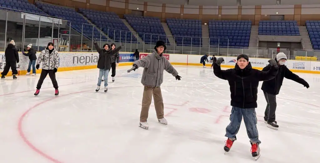 1月9日(金)、苫小牧キャンパス初となるスケート行事をnepiaアイスアリーナで実施しました。地域的にアイスホッケーが盛んなこともあり小学生の頃からスケートを経験している生徒が多く、上手に滑っている様子が印象的でした。初心者の生徒もいましたが、経験者が優しく教えてあげていたり、経験者同士でレースをしたり、それぞれが様々な楽しみ方で楽しんでいました。3年生も最後の行事に積極的に参加してくれたことを嬉しく思います。