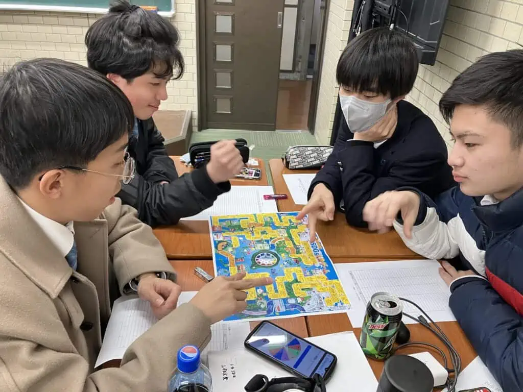 総合進学専攻の授業ではSDGsを用いた人生ゲームを行いました。