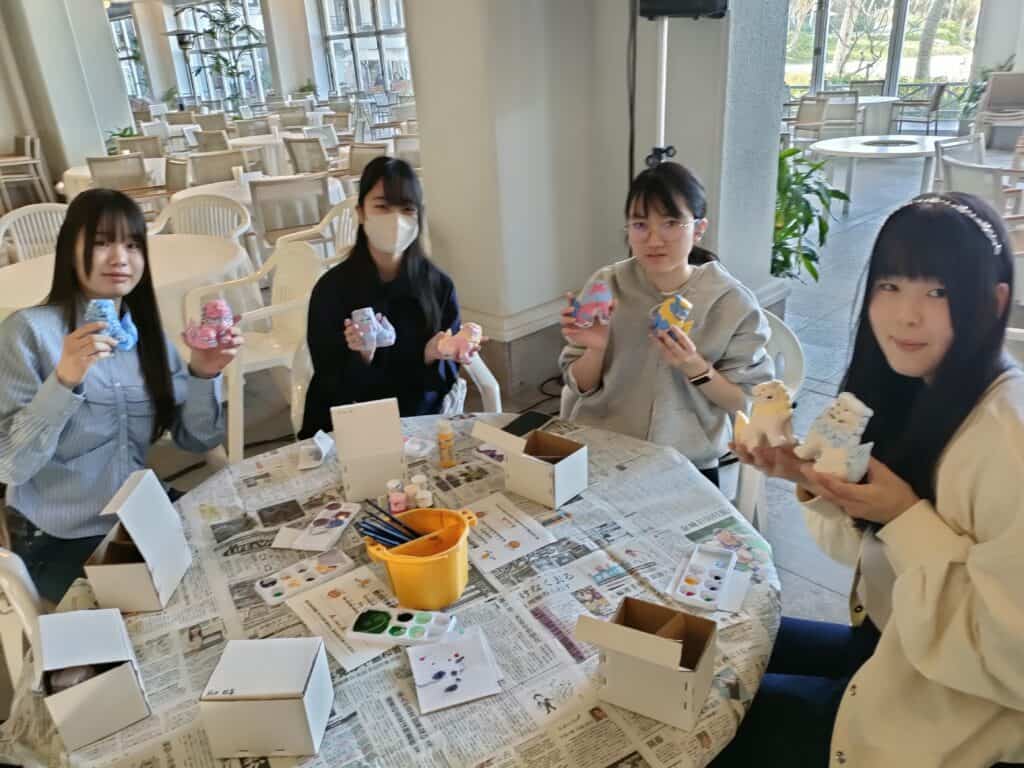 修学旅行3日目は、午前中にマリンスポーツ体験とシーサーの絵付け体験に分かれて活動しました。海の開放感を味わいながら思いきり楽しむ生徒や、個性あふれる作品づくりに集中する姿が印象的でした。午後からは班ごとのタクシー研修へ。水族館を訪れたり、琉球ガラス制作に挑戦したりと、それぞれが事前に計画した場所で沖縄の文化や自然に触れました。