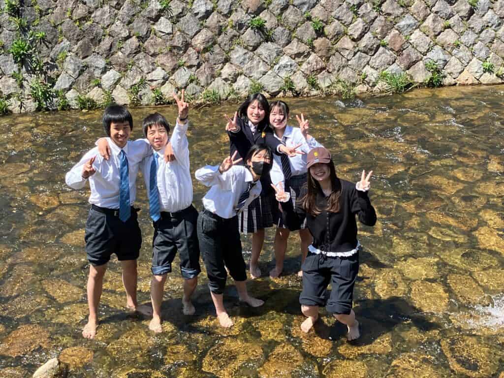 学年での親睦会を兼ねて芦屋川へ行きました。