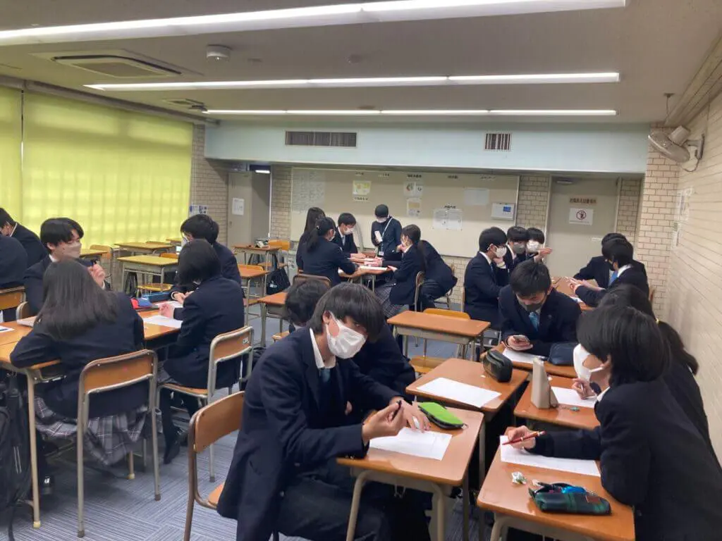 また、避難訓練後はHRクラスで被災に関するグループワークを行いました。