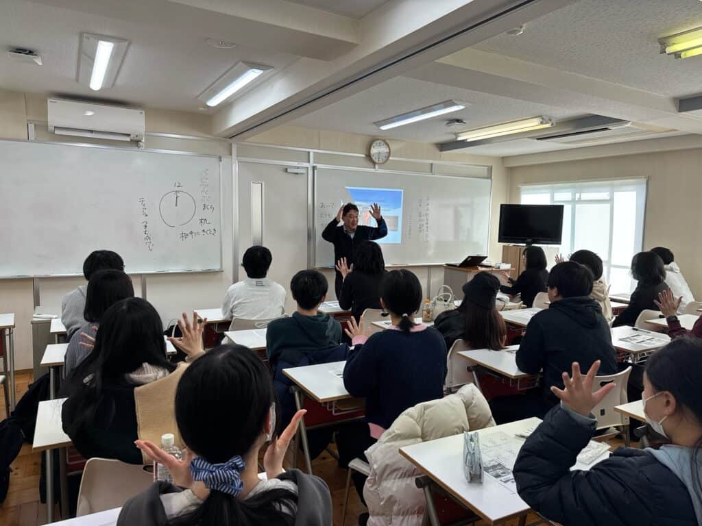 2月2日(月)、兵庫県聴覚障害者協会の講師の方を迎え、「手話講座」を実施しました。参加した生徒たちのほとんどが手話が初めてでした。講師の手話を交えた説明に対して、一生懸命理解しようと集中している生徒たちが印象的でした。手話の実践に入ると和やかな雰囲気の中で、生徒たちは楽しみながら、手話を使ったコミュニケーションに取り組んでいました。