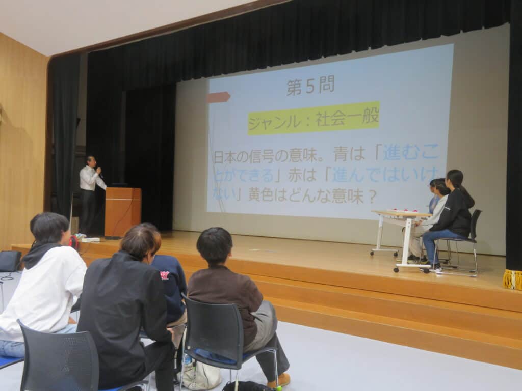 第2部は成績上位者3名による決勝戦です。3名は舞台に上がり、ジャンル別早押しクイズに挑戦しました。1ポイントを争う接戦に解答者も会場も大いに盛り上がりました。