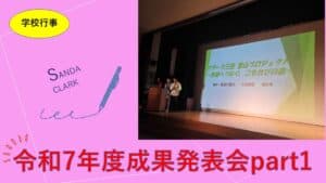 part2では、ギター講座と吹奏楽講座の生徒たちの様子とアート講座で学んだ生徒たちの作品、探究授業の生徒たちのポスター展示、食農講座と体育祭実行委員のスライドをご覧ください。