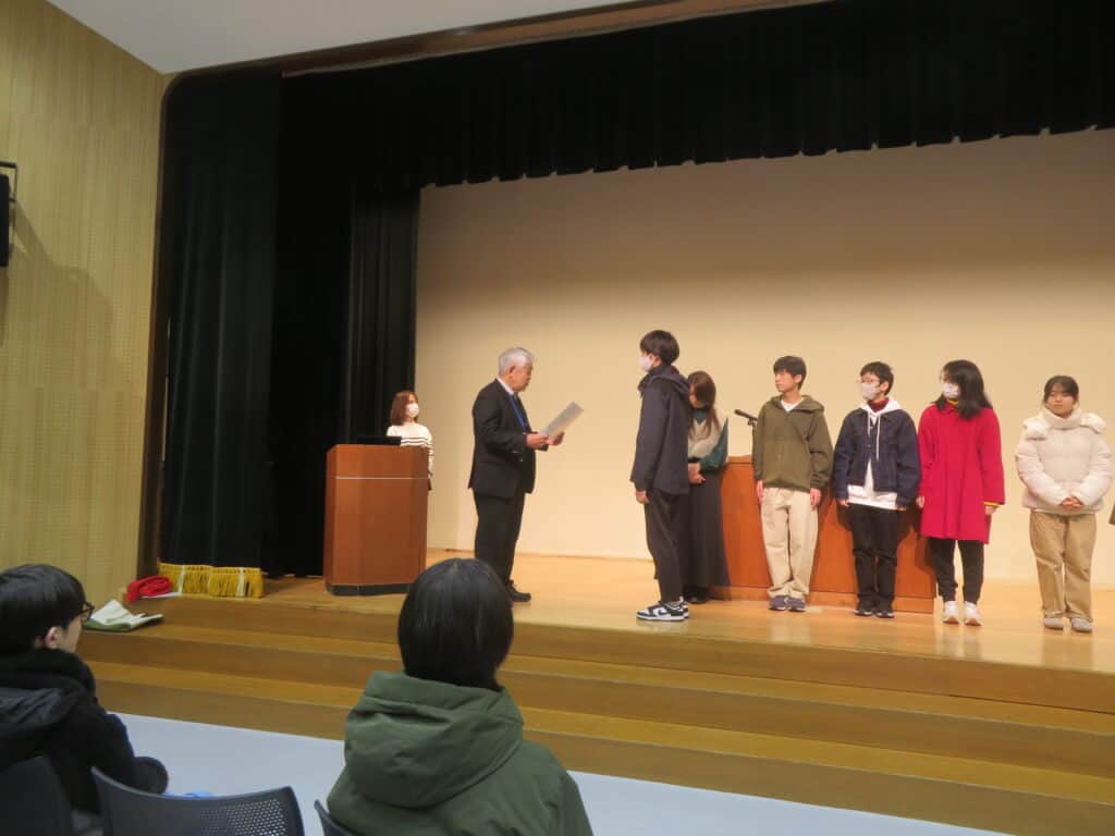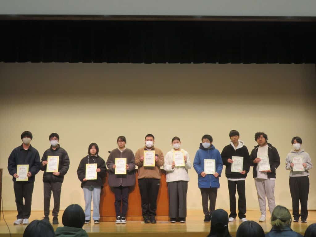 1月14日(水)、三田市民センターで全体集会を行いました。新年最初の登校日、休み明けの生徒たちは元気な姿見せてくれました。生徒会長の開式の挨拶の後、森本先生の講話と表彰式が行われました。