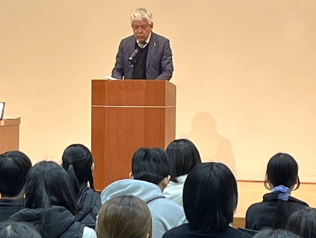 3月6日(金)、「三田市民センター」で後期終業式が行われました。まずは森本教育顧問よりお言葉をいただきました。続いて荒木キャンパス長からは、本年度の振り返りと次年度に向けてのお話をいただきました。また、飯田先生より生徒指導について、SNS等の危険性と情報モラルについての話がありました。最後に生徒たちはそれぞれの「リフレクションシート」を作成しました。