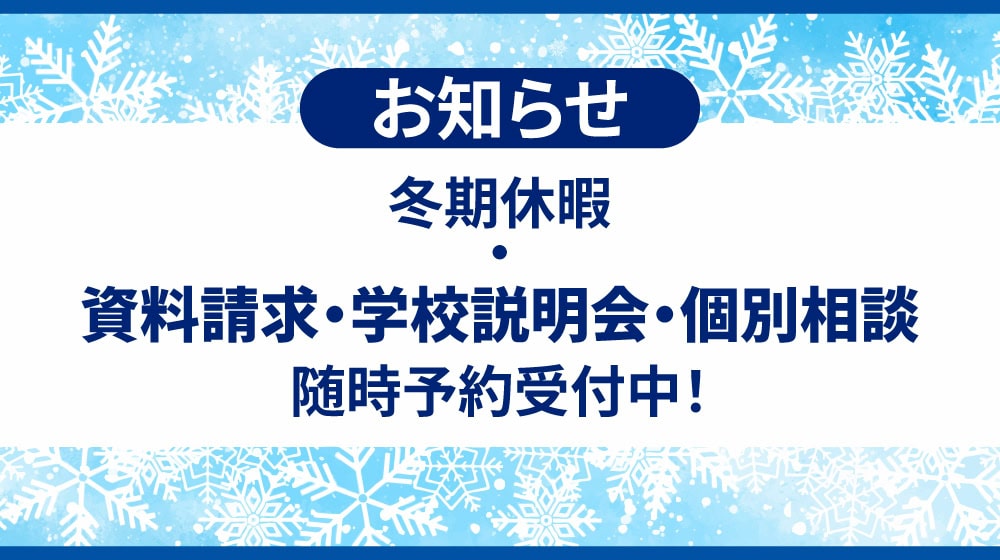 【神戸三宮キャンパス】冬期休暇のお知らせ/1月開催学校説明会・個別相談 予約受付中!