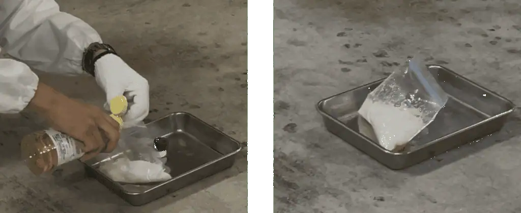 授業後半では酢酸と重曹をもちいた実験を行いました。密閉した袋が化学反応によって膨らむ様子や、内部にそそいだ酢酸の変化を観察し、本日学んだことを体験することで学びを深めました。