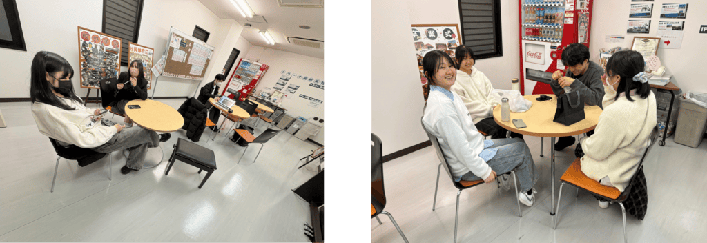 教室でお昼ごはんを食べる生徒がほとんどですが、中にはフリースペースでお昼を食べる生徒もおります。和気あいあいと楽しそうに過ごす生徒をみると心が温まります。