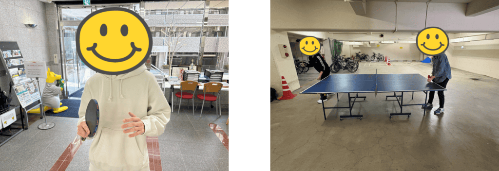 三宮キャンパスには卓球台とラケットなどの道具がそろってはいるのですが、今回はマイラケットを持参して登校する生徒もおりました!