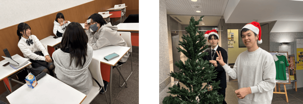 クリスマス会で行うレクリエーションの打ち合わせや、教室の飾りつけ、お菓子などの買い出しなど…生徒たちがテキパキと準備をしてくれていました!